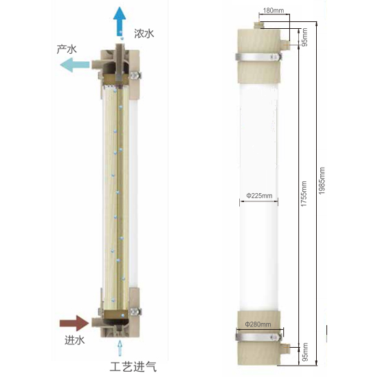 壓力式柱式超濾膜組件(HPT-Y)系列產(chǎn)品采用NIPS濕法均質(zhì)膜的制備工藝,顯著提高了拉伸強(qiáng)度,使用壽命更長(zhǎng),并且突破了聚偏氟乙烯(PVDF)超濾膜超親水改性,顯著提高了膜通量及其抗污染性能,保證系統(tǒng)長(zhǎng)期穩(wěn)定運(yùn)行。該產(chǎn)品被廣泛應(yīng)用于飲用水設(shè)備、反滲透預(yù)處理、工業(yè)廢水、市政污水回用等多個(gè)領(lǐng)域。
