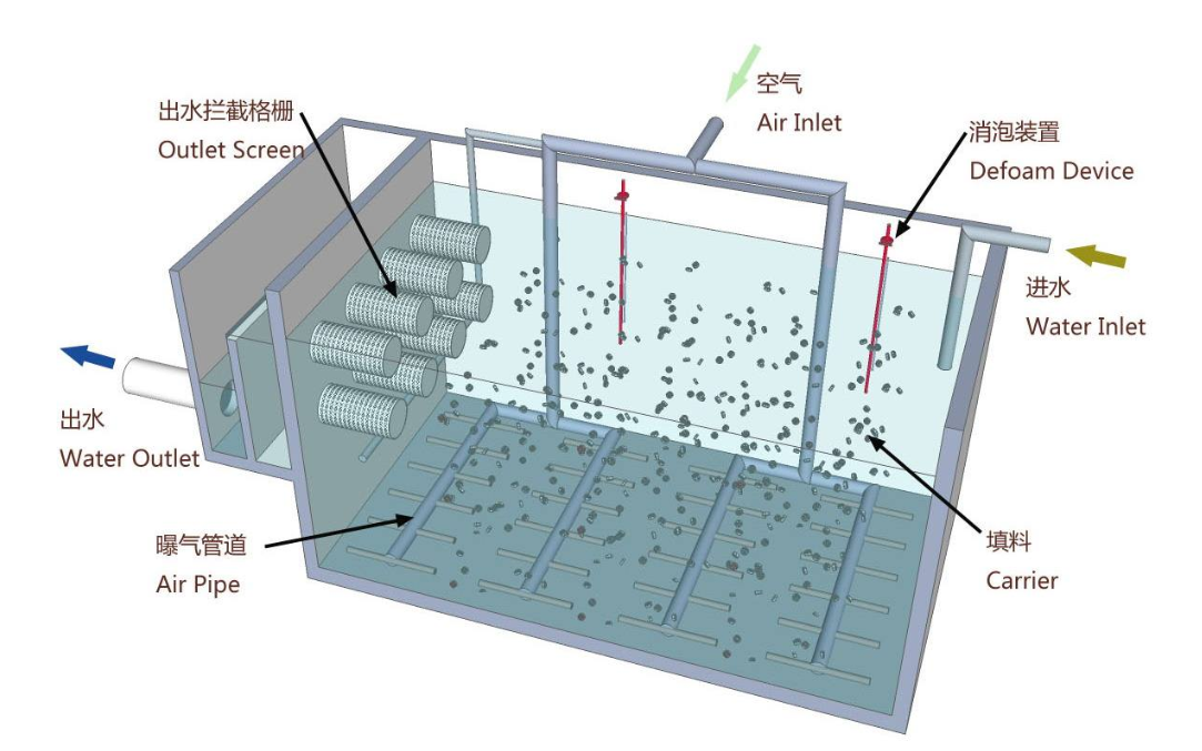 5. 懸浮填料系統(tǒng)壽命長,無需填料支架,節(jié)省安裝費用;