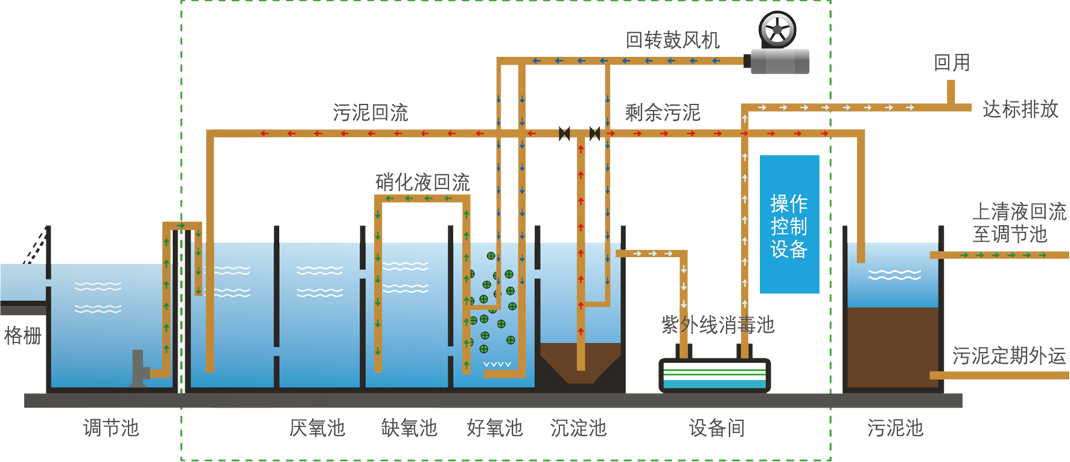 針對各類分散點源污水的處理難題,我公司精心研發(fā)出系列化的MBBR智能一體化污水處理設(shè)備。該設(shè)備采用了我公司的MBBR集成技術(shù),總結(jié)了目前國內(nèi)外一體化設(shè)備運行中的經(jīng)驗和不足,結(jié)合我公司自己的研究成果和工程實踐,是集去除COD、NH3-N和TN于一身的多功能污水處理集成設(shè)備。該系列污水處理設(shè)備優(yōu)點:出水水質(zhì)好、運行成本低、系統(tǒng)抗沖擊性強(qiáng)、污泥量少,自動化程度高等;另外,作為一體化設(shè)備,其占地面積小,便于集成。它既可以作為小型的污水回用設(shè)備,又可以作為較大型污水處理廠(站)的核心處理單元,具有廣闊的應(yīng)用前景。